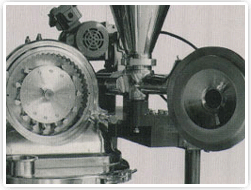 1. 고속회전으로 미분의 분쇄. 2. 회전하는 원판에 HAMMER를 부착하여 쇄료를 HAMMER의 접선 방향으로 투입 충격에 의해 분쇄. 3. HAMMER 및 PIN의 교체가 간단함. 4. 구조가 간단하여 TROBLE 발생 없음. 5. 하부 SCREEN 교환으로 입도 조절 가능. 6. 용도 : 식품, 화공약품, 건강보조식품, 2차 분쇄기로 초소형을 원하는 USER에게 적합. |